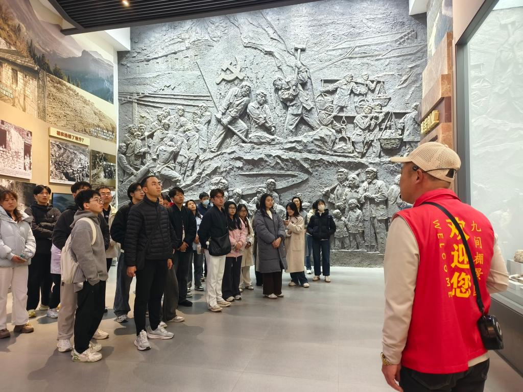 下午,活动延伸至九间棚红色教育基地。在九间棚博物馆,师生党员认真听讲解员讲述,九间棚村如何在党的领导下,通过团结协作、艰苦奋斗,将原本贫困落后的小山村建设成为如今远近闻名的富裕村、文明村的奋斗历程。这些真实而感人的故事,让师生党员们深受触动,进一步坚定了他们传承奋斗精神、勇担时代使命的决心。