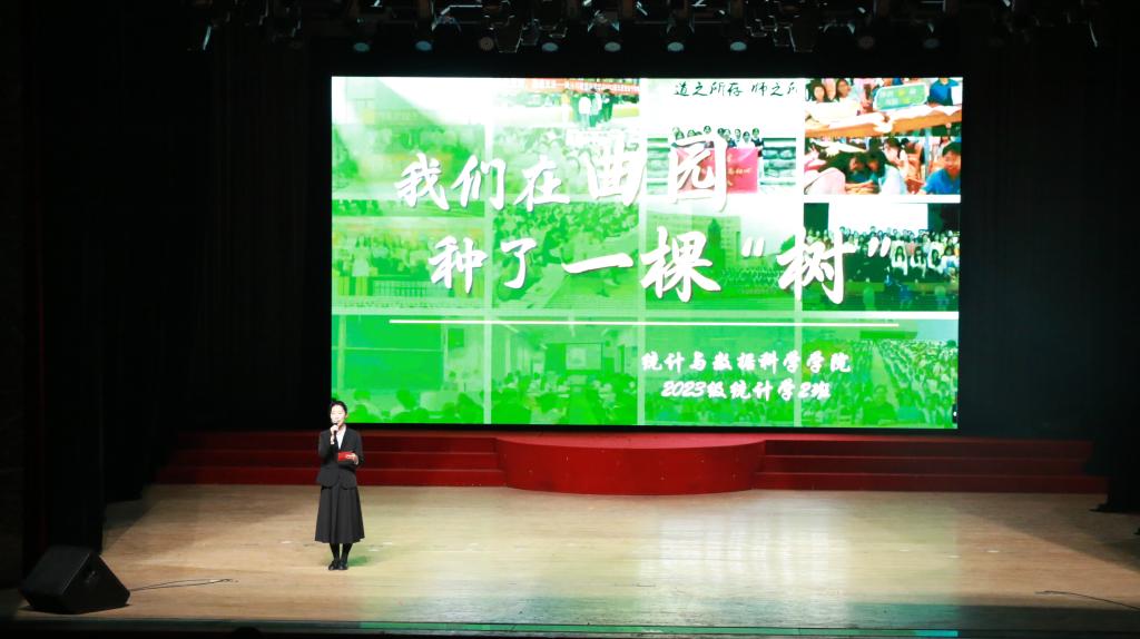 决赛阶段分为班级介绍与班级风采展示两个环节。在班级介绍环节,2023级统计学2班班长结合视频展播,自信从容地讲述班级故事,用数据和事实生动映照出班级团结一心、奋发进取的集体风貌。在班级风采展示环节,以情景剧《统计里的家国情》,生动演绎“三代坚守,一辈担当”一个普通家庭里关于统计的温情与力量,歌舞表演《像你这样的朋友》则展示了班级同学的团结与热情,以热情洋溢的舞蹈和活泼可爱的风格赢得在场观众和评委喜欢。