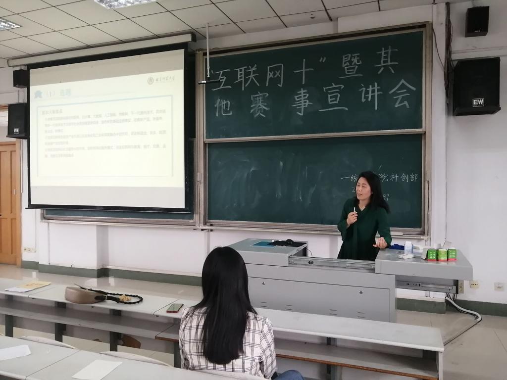 于5月19日下午3:00,分别在综合楼601与606教室,面向2019级与2020级同学召开了“互联网+”大赛暨其他赛事宣讲会。本次宣讲会由优秀创新创业导师苏玉霞老师以及王少新老师主讲,2019级的张汝阳同学、吕鑫琪同学与崔玉莹同学,2017级的罗玉贤同学分享自己的经验,以及2019级、2020级全体同学参加。