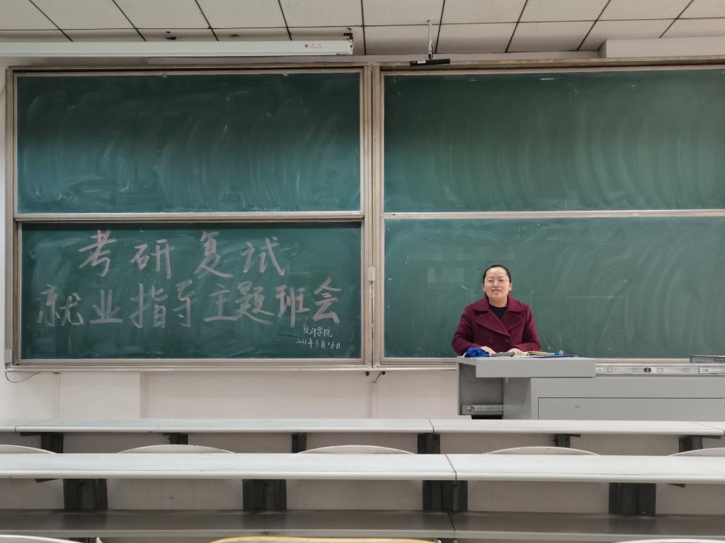 于3月16日上午10点在综合楼106教室开展了考研复试暨就业指导班会。17级辅导员李宴美以及全体17级同学参加会议。