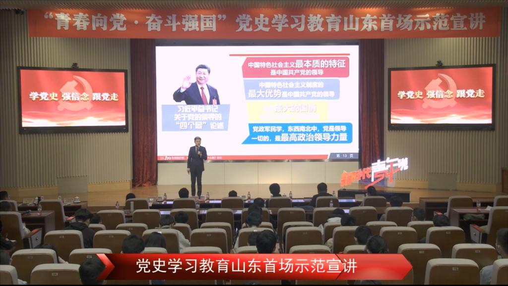本次宣讲是共青团山东省委围绕庆祝建党百年、开展党史学习教育的系列主题教育之一。4位青年讲师以“青春向党,奋斗强国”为主题以“学党史、强信念、跟党走”为中心,围绕党的百年辉煌历程作主题宣讲。山东大学马克思主义学院副院长、教授郑敬斌以《跨越百年的自信与从容》为题,对建党百年以来不忘初心、砥砺前行的辉煌历程进行深入阐释。中共山东省委党校马克思主义学院教师刘蕊以《把握时代大势,书写建功新时代的青年答卷》为题,教育青少年要勇于担当时代使命,用奋斗书写人生华章。山东理工大学马克思主义学院教师岳松以《从百年辉煌历程,读懂中国共产党为什么“能”》为主题,用青少年喜爱的青言青语解读党史“大道理”。国网山东省电力公司党校教师张彤以《苟坝的灯光 真理的灯光》为题,引导青少年从党的革命传统、优良作风中汲取奋进力量。