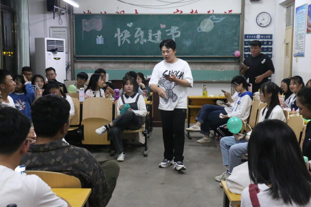 晚会开始之前,辅导员张庆伟老师首先组织召开班会,她祝福同学们双节快乐,叮嘱同学们在中秋节这个阖家团圆的时刻,虽然不能回家,但是要记得问候父母,给家人送祝福。晚会开始,各班主持人进行开场白,介绍此次晚会的主要活动内容并送上了节日祝福。晚会节目表演正式开始,其中应用统计班苏志涵同学带来一首吉他自弹歌曲,表演了歌曲串烧,将在场的同学们一同带入放松愉悦的氛围;统计二班的互动游戏“谁是卧底”,所有同学融入其中,充分展现了20级学子的活跃思维,整个晚会气氛格外高涨。一首首流行歌曲朗朗上口,充分展现了20级学子的多才多艺,能歌善舞。晚会在同学们的欢声笑语中画上了圆满的句号。