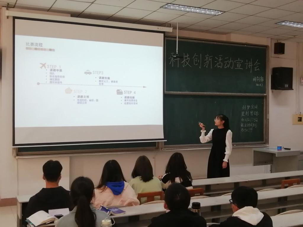 于2020年11月7日下午2:00在综合楼201室成功举办科技创新经验分享会。出席本次活动的经验分享人是18级学生代表张欣怡、庞惠心和张子璇同学,19级科创部副部王世豪和徐屹汝同学。