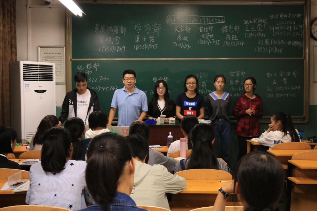 学生会主席王冰率领信息部、文艺部等部门部长,另一队是由副主席王雨率领秘书处、组织部等部门部长。两队伍同时进班宣传,首先各部长依次在台上介绍了自己部门的具体工作、部门活动以及工作要求,并表示非常期待新成员的加入并与其一起将bet365