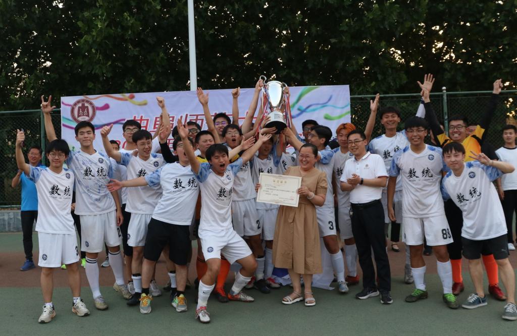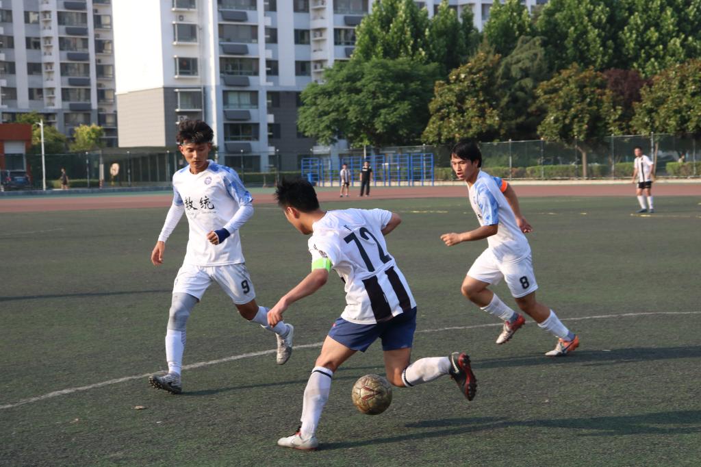 6月8日,决赛在校西操场举行,足球队全体队员积极参加。绿茵场上,球员们毫不示弱,双方细腻的脚法、默契的配合、缜密的队形部署充分展示了联队的技战术水平。场上队员激情澎湃,场下观众热烈欢呼,比赛异常紧张,每一名足球运动员都以他们的行动诠释着“为梦想不畏惧”的拼搏精神,展现了数学与统计联队自信昂扬的精神风貌。最终,数学与统计联队男足以4:2的成绩夺得男子组冠军,女足获得女子组亚军。学院团委书记李宴美和部分学生干部亲临现场观摩比赛。