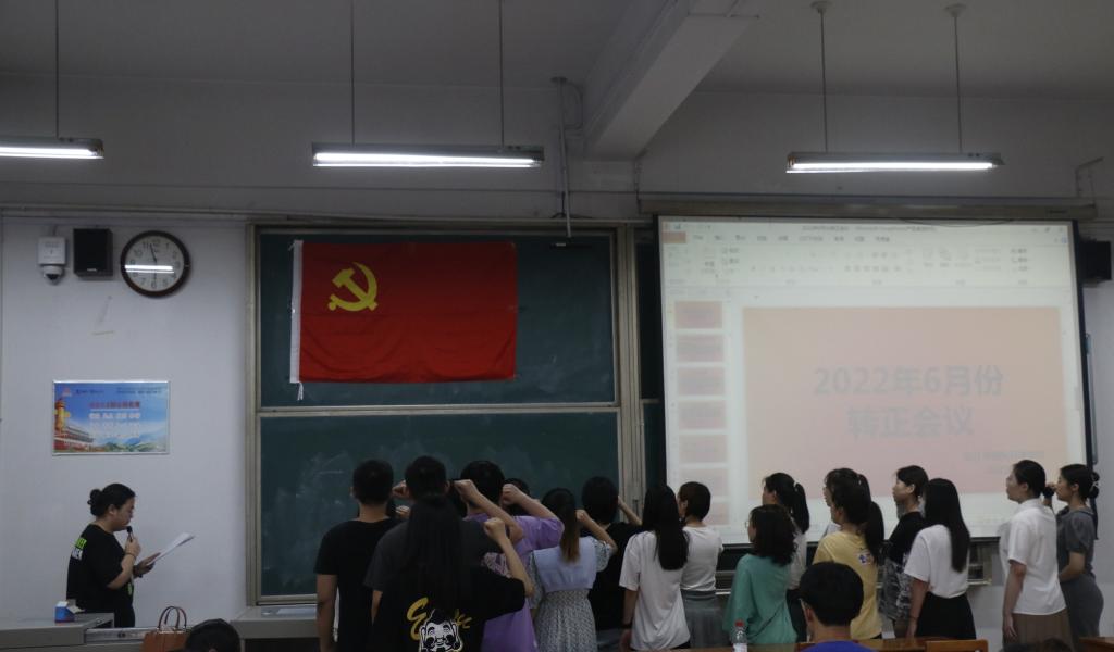大会在齐奏国歌中拉开序幕。本次会议严格按照流程进行,第一,由22名转正对象宣读转正申请书,主要介绍自身情况,努力方向等;第二,支部党员讨论并进行无记名投票;第三,支部委员会宣布投票结果;第四,由22名预备党员进行入党宣誓;第五,由季中书记对本次会议做出总结;最后,奏唱国际歌。