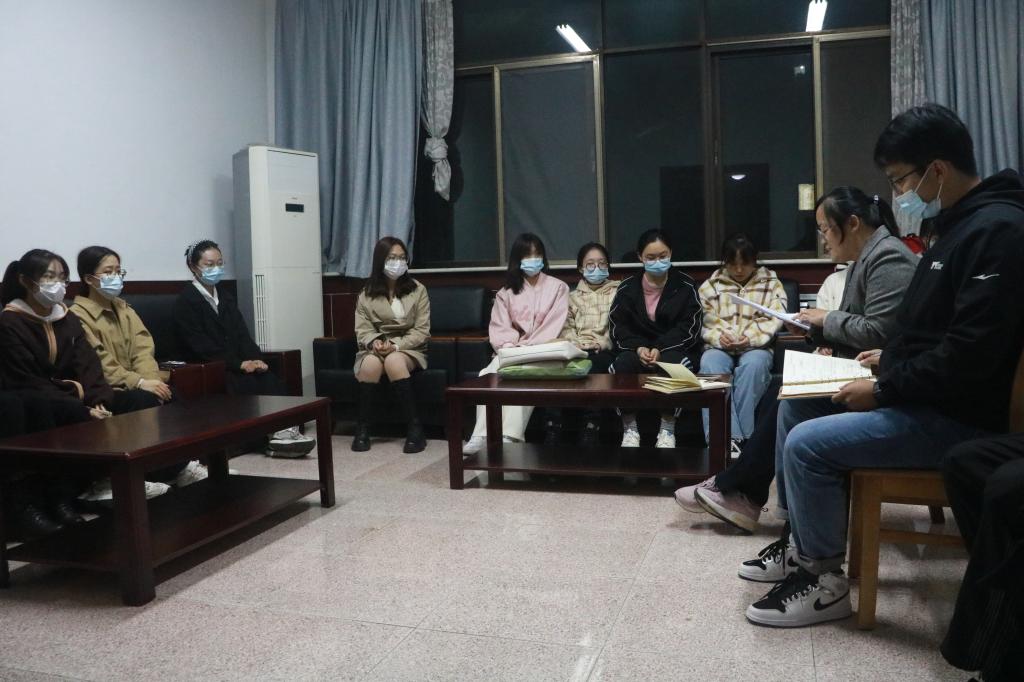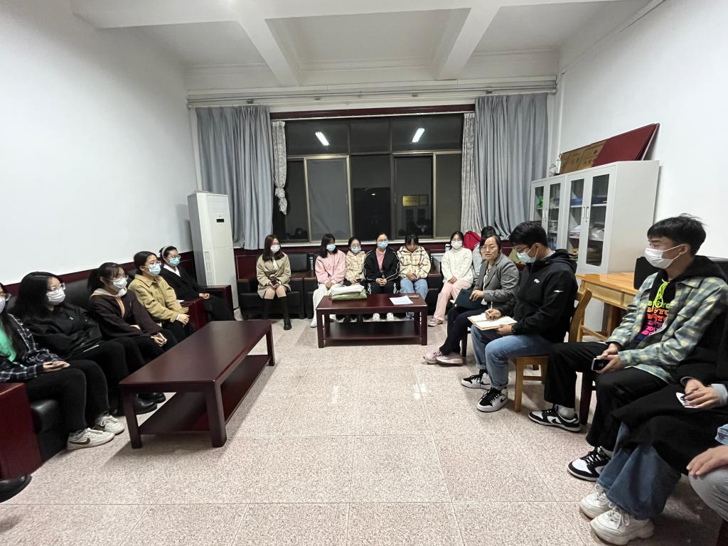 第九次代表大会”精神,会议由团委书记李宴美主持,2022级辅导员王旭以及团委学生会骨干参加此次会议。