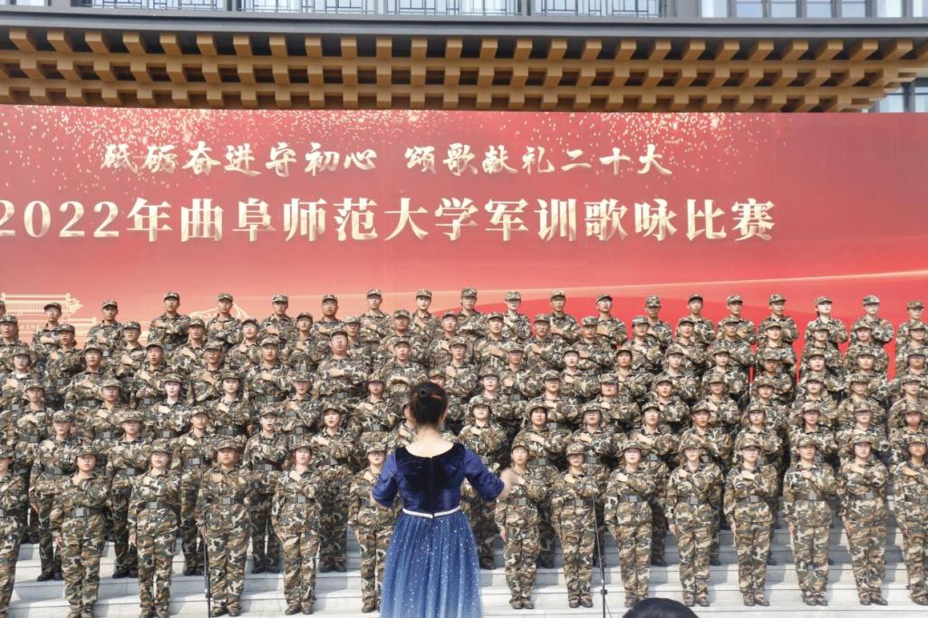 于10月15日下午一点,在曲阜西校区图书馆前广场举行“砥砺奋进守初心,颂歌献礼二十大”军训歌咏比赛,bet365