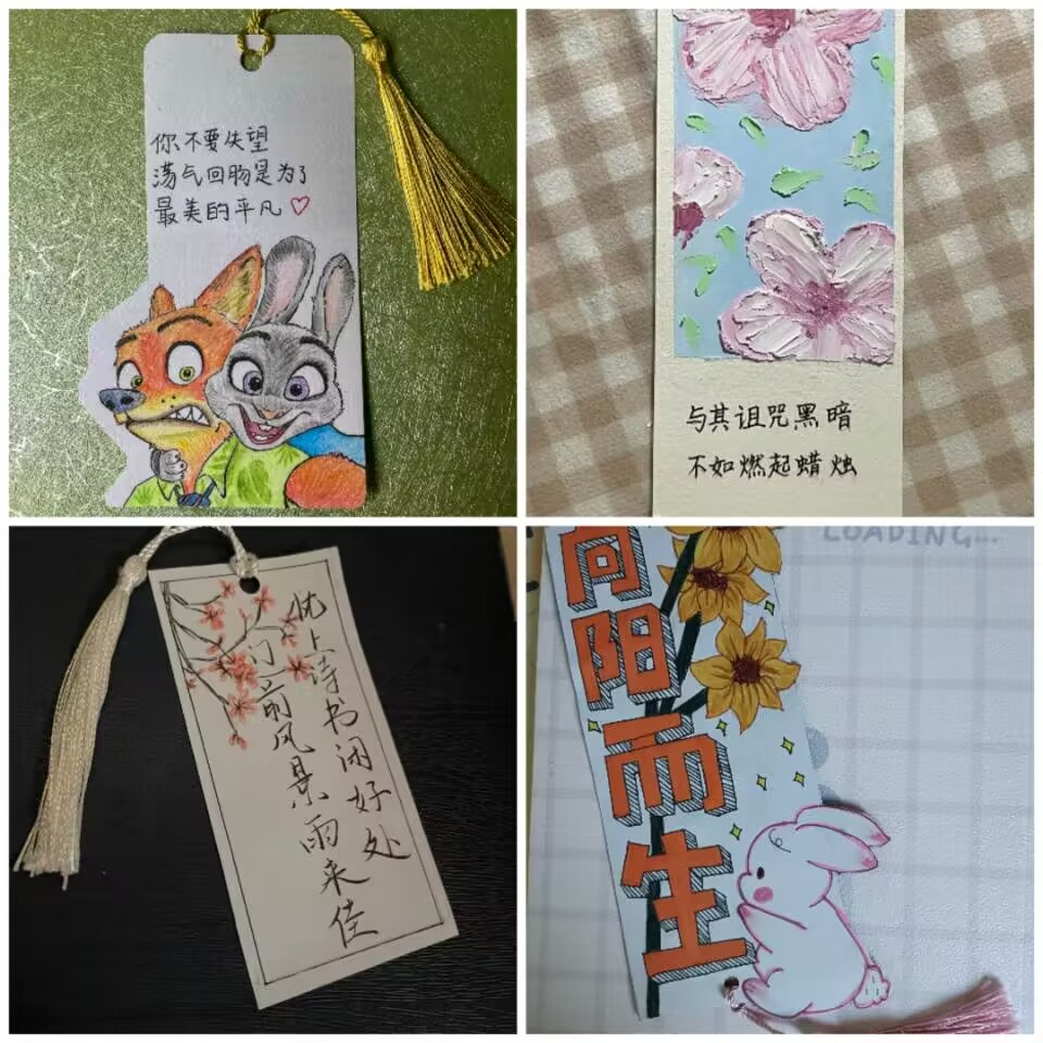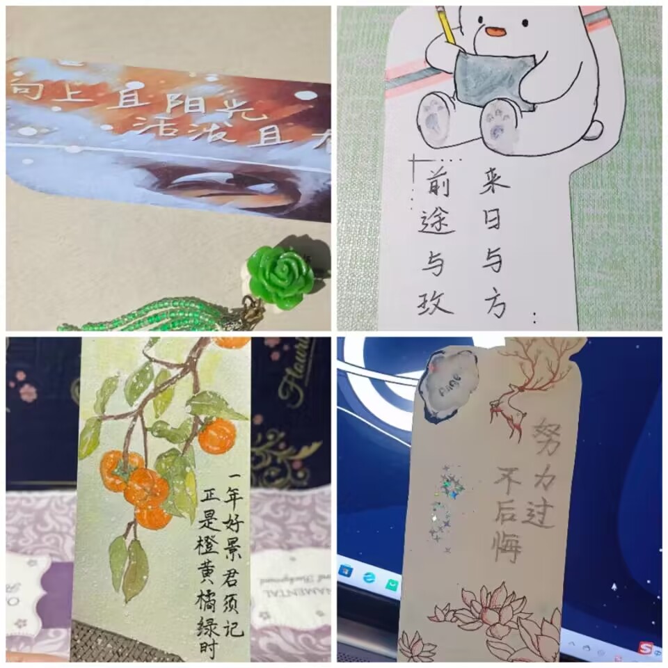 活动开始后,同学们热情高涨,充分发挥自己的动手能力,展现自己丰富的内心世界,表达对自己、对社会、对他人的美好祝愿。短短几天内,同学们陆续制作并上传了几十张制作手法各异、构思独特的精美书签。每一套书签都凝聚着同学们的用心与智慧,从制作书签过程中,同学们不仅掌握了书签的制作方法,更在制作中沉下心来,以心换心,使自己更加专注,表达心愿,送达祝福。活动结束后,心理健康部各成员及时对作品进行汇总打分,秉承公平、严谨、透明的原则,共评选出一等奖六人,二等奖十八人,三等奖二十四人。