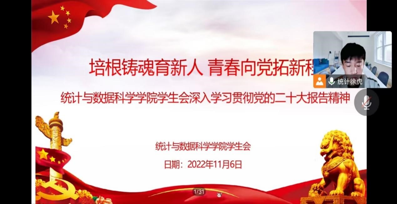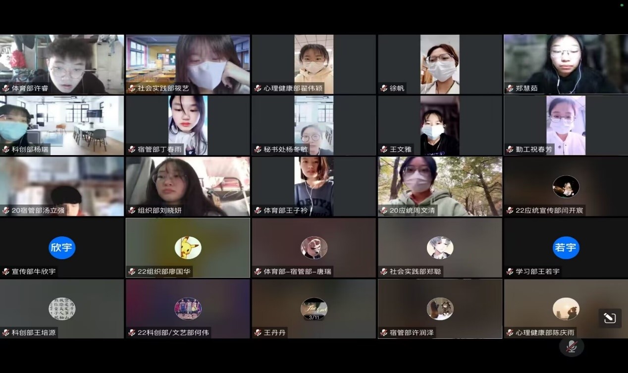 学生会骨干深入学习贯彻党的二十大报告精神线上学习交流会。会议由学院学生会主席徐虎主持,学院学生会全体人员参加。