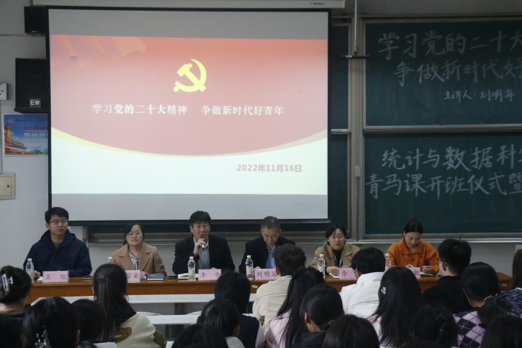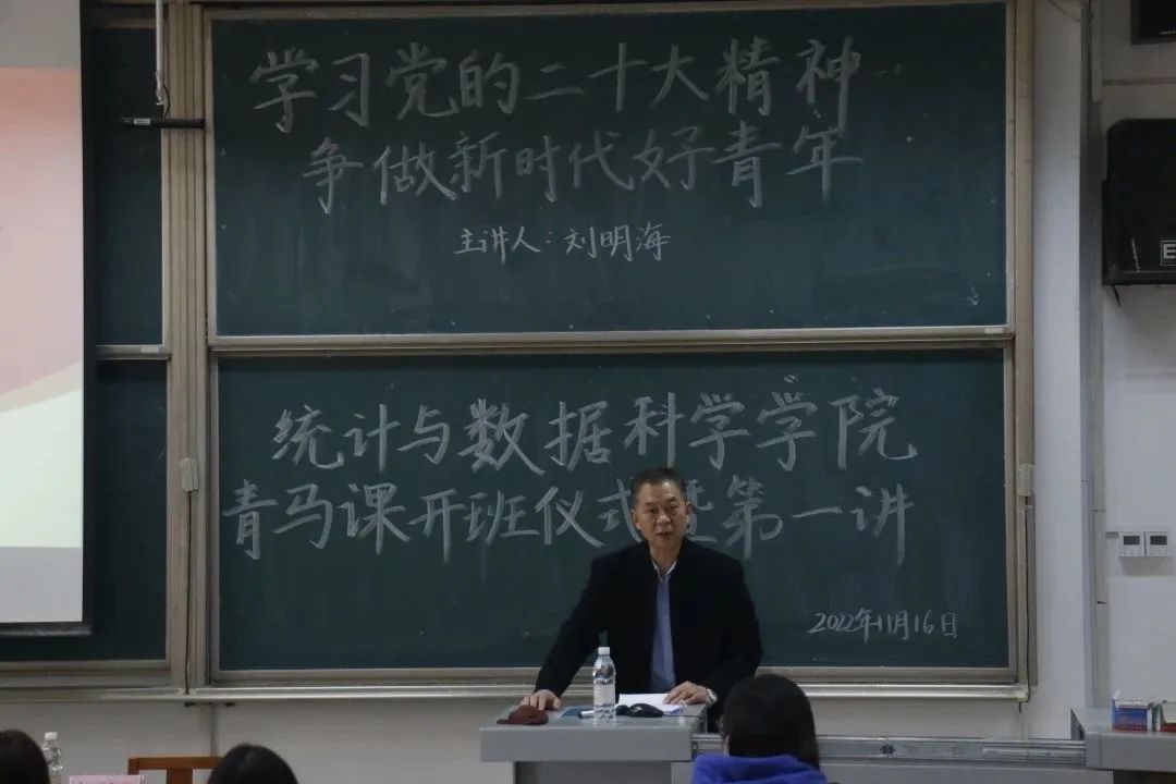 党委书记刘明海以“学习党的二十大精神 争做新时代好青年”为主题为学生骨干开启“青马工程”第一课。刘明海书记对学院学生干部提出具体要求,并着重强调党的二十大报告对青年同志的寄语:青年强,则国家强。当代中国青年生逢其时,施展才干的舞台无比广阔,实现梦想的前景无比光明。广大青年要坚定不移听党话、跟党走,怀抱梦想又脚踏实地,敢想敢为又善作善成,立志做有理想、敢担当、能吃苦、肯奋斗的新时代好青年,让青春在全面建设社会主义现代化国家的火热实践中绽放绚丽之花。