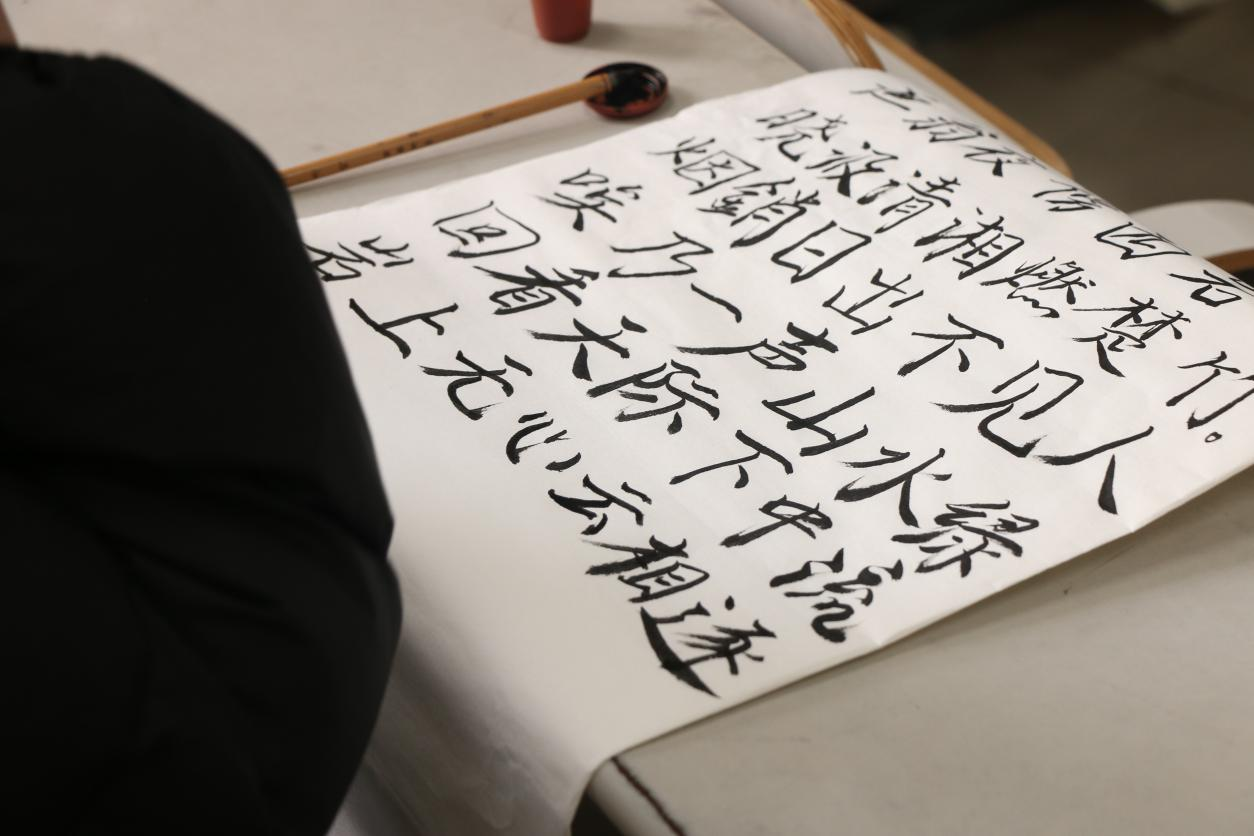 大赛共分硬笔、软笔、粉笔三组,硬笔组书写李白的《登金陵凤凰台》,软笔组书写柳宗元的《渔翁》,粉笔组书写李商隐的《登乐游原》。比赛期间,同学们沉着冷静,用心书写每一笔画、每一个汉字,尽其所能地展示自身书法的才能。赛后,学习部负责人对作品进行认真评审,从字体大小、间架结构和卷面等多个方面综合评估参赛者的书法水平,在公平公正的基础上评出优秀作品。