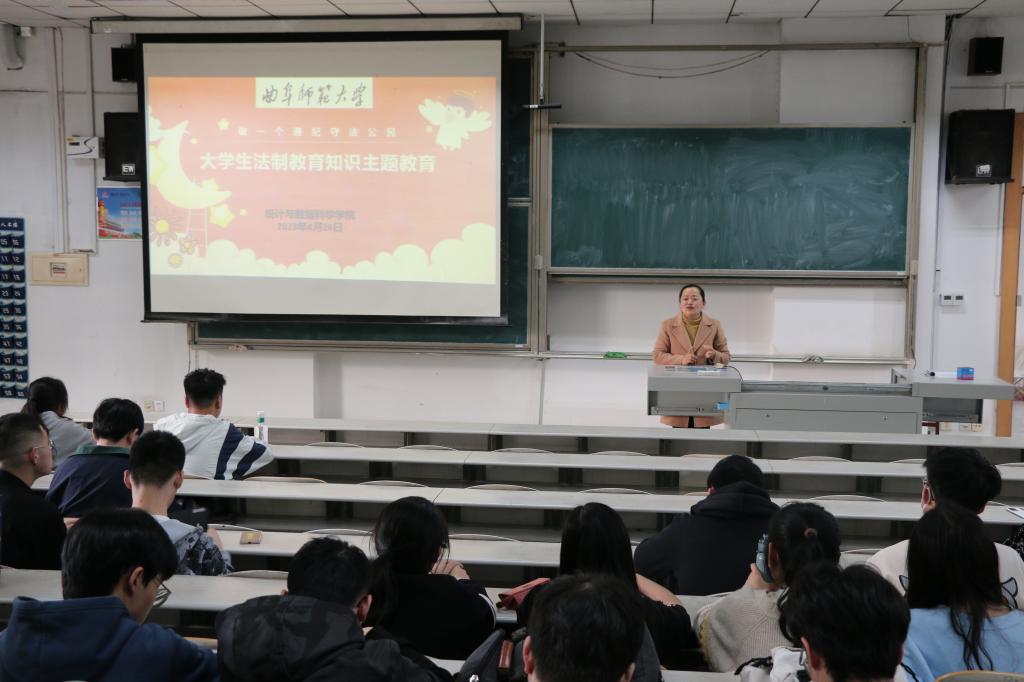 于2023年4月26日下午两点在综合楼406教室举办大学生法制教育知识主题班会。本次会议由2021级辅导员李宴美老师主持,2021级全体同学参加。