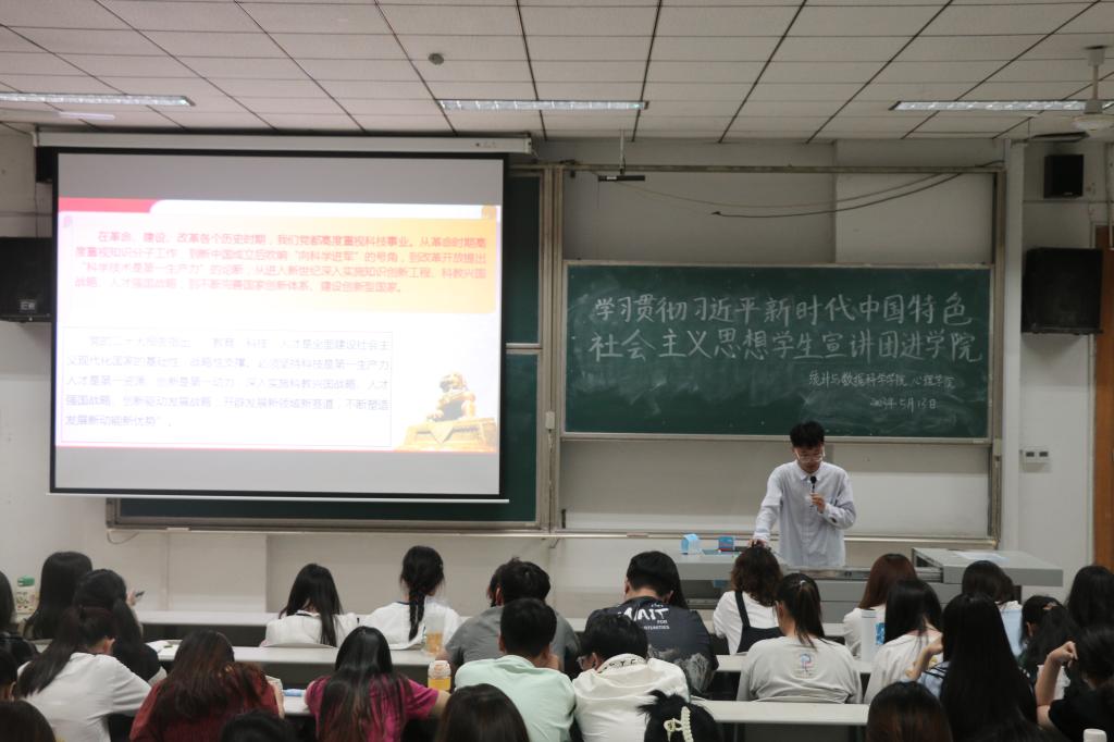 宣讲会上,吕昕同学总体上围绕党的二十大相关内容,从全面了解党的二十大基本概况、深刻领会党的二十大的重要意义、充分掌握党的二十大精神的主旨思想以及科学把握党的二十大精神的主要内容四个方面进行宣讲。她强调,党的二十大精神于筑牢中华民族共同体意识密切相关,青年学子应将个人成长于国家发展、民族团结紧密结合。吴运超同学以“科教融合”为主题,从科技发展的重要性出发,详细介绍科技创新赋能新时代发展的具体方式。田昭霖同学以“两个确立”为主题进行宣讲,强调“两个确立”是新时代实现伟大变革的关键所在,是新征程上赢得未来的必然要求,为我们开创未来提供了根本保障。