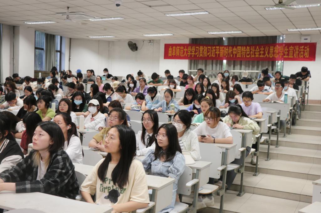 于5月13日晚上七点,在综合楼106教室开展党的二十大精神宣讲活动。本次活动邀请校团委学习贯彻习近平新时代中国特色社会主义思想学生宣讲团成员宣讲党的二十大精神内涵,学生会全体成员参加。