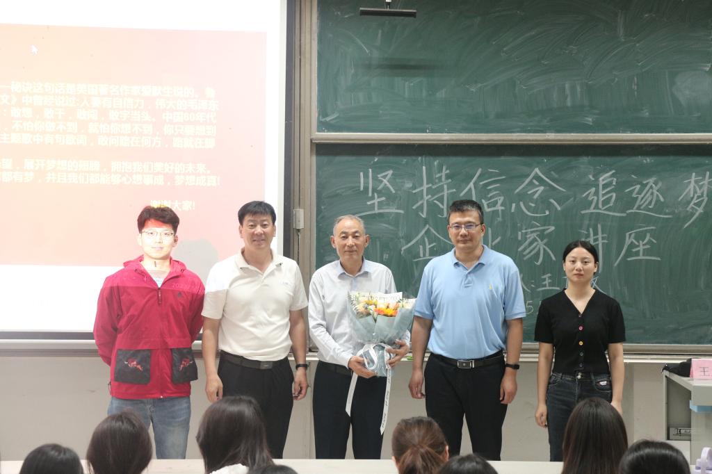 于5月26日下午3:30在综合楼101教室举行“坚定信念 追逐梦想 企业家讲座”活动。本次活动邀请到山东铭泰医疗设备集团有限公司董事长王广政先生分享就业创业经历,学院党委副书记季中主持,副院长赵翔华和22级辅导员王旭老师出席本次活动,21级、22级、20级学生积极参加。