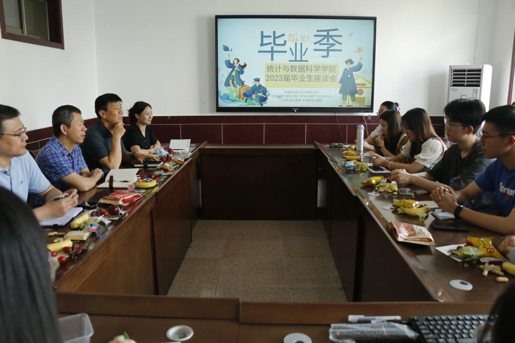 在学院213会议室举办2023届毕业生座谈会,院长赵胜利、党委副书记季中、副院长赵翔华、团委书记李宴美、毕业班辅导员李祥敏、2022级辅导员王旭以及2023届毕业生代表参加座谈会。