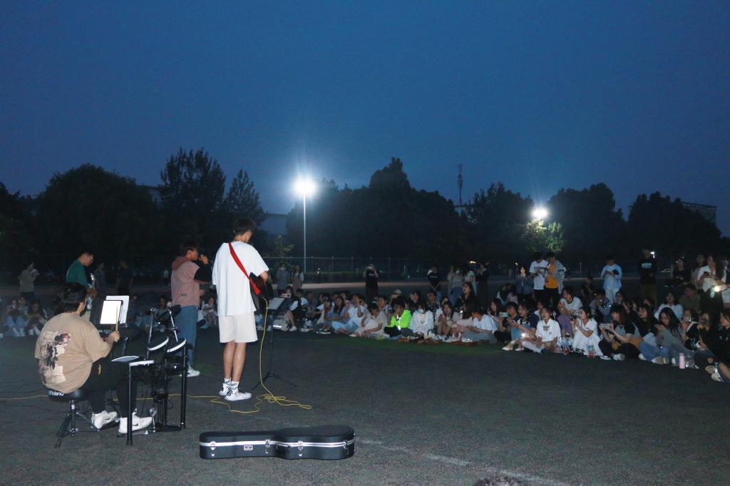于2023年5月26日晚上7点在学校西操场举行毕业生草坪音乐会。学院团委书记李宴美、2019级辅导员李祥敏老师以及学院全体学生共同享受这场音乐盛宴。