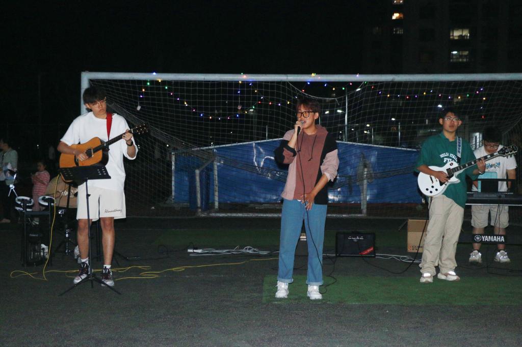 音乐会在悠扬动听的《夏天的风》、《我记得》、《梦一场》、《追梦赤子心》等歌曲中徐徐进行。高速公路乐队带来的《那些年》把全场的氛围推向高潮,他们用动听的歌声和饱满的热情让全场掌声不断。活动中还穿插了游戏环节,同学们积极参与互动,笑声、掌声、欢呼声不绝于耳。最后同学们在现场合唱《起风了》,在歌声中传达了对毕业生的真挚祝福。