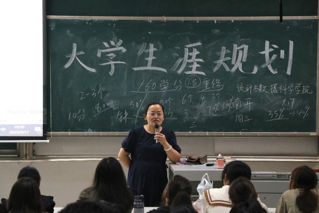 于2023年9月17日晚7:00在综合楼201教室召开大学生涯规划入学教育讲座。本次讲座由院团委书记李宴美老师主讲,2023级全体新生参加。