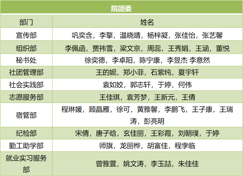 (通讯员:田清悦)为加强学生干部队伍建设,更好地服务学院同学,bet365 于9月17日上午8点分批进行院团委学生会副部长竞选工作。经过面试和综合评选,现将结果公示如下:
