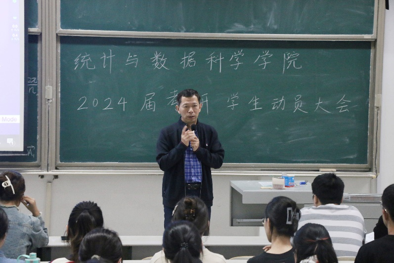 会议伊始,王旭针对考前事宜提出建议,希望同学们树立好考研信心,做好规划,放平心态,积极备考。随后,赵胜利院长从历年考研数据、报考院校、报名情况、调剂等方面进行详细分析,分享了过去几年考研学子的考研经历和经验,帮助同学们更好地了解近几年考研形势,并结合自身能力,合理选择学校和专业。最后,季中书记结合学院往年考研情况做出总结,激励同学们意识到考研的内在动机以及考研对个人发展的重要性,积极报考,给了同学们极大的鼓舞和信心。