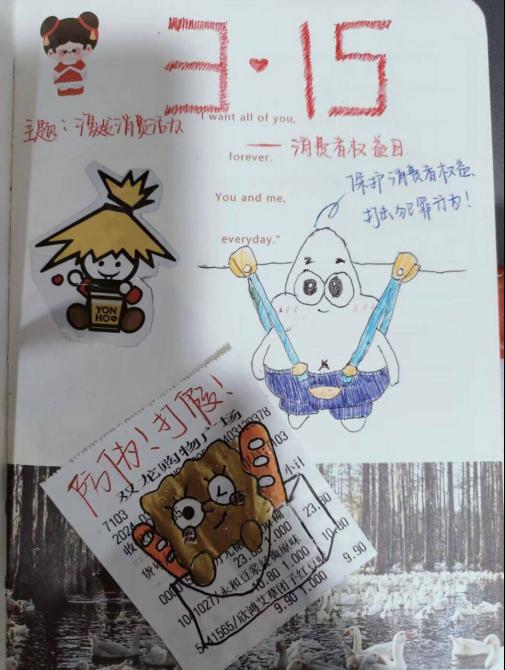 于3月15日-3月21日举办“鸣响正义维权曲,筑就心灵安宁桥”消费记录凭证DIY活动,全体学生参与。