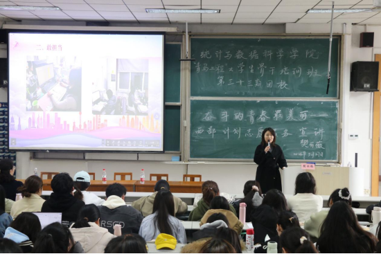 最后石书记进行总结,她号召同学们以奋斗的姿态书写新时代的青春新故事,为奋力谱写祖国现代化建设新篇章贡献蓬勃力量;她鼓励大家立志到西部,为祖国西部发展贡献自己的一份力量。