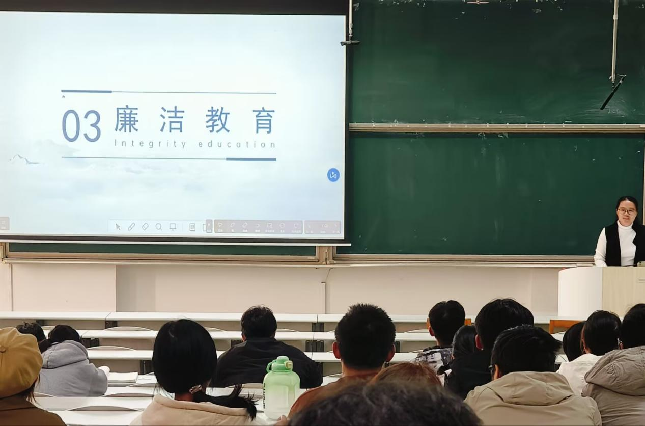 于11月6日下午3点在综合楼201组织开展廉洁教育主题班会。本次班会由2024级辅导员李文静主持,全体2024级学生参与。