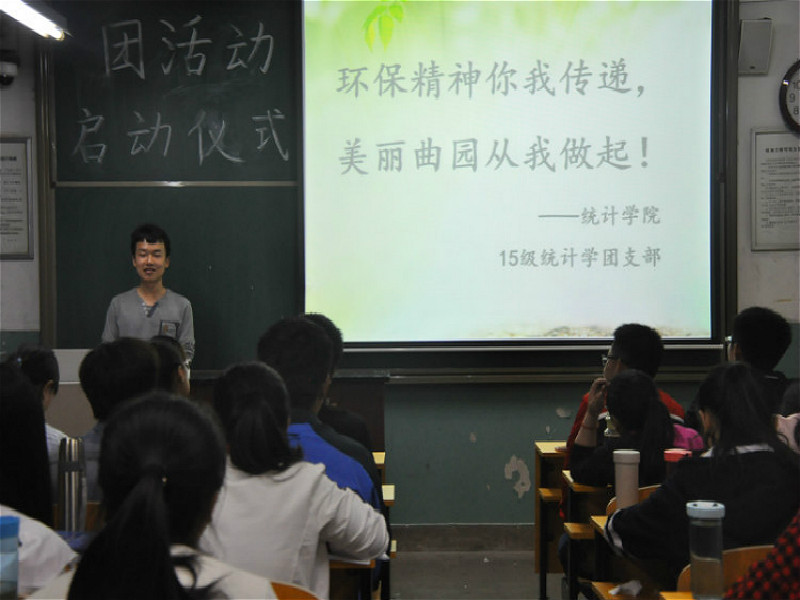 2016年5月11日晚六点半,2015级统计班团支部带领全班同学举办了“环保精神你我传递,魅力曲园从我做起“创新活动启动仪式。