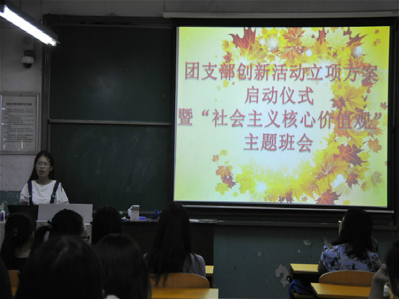 活动一:团支部创新活动立项方案启动仪式暨“社会主义核心价值观”主题班会。