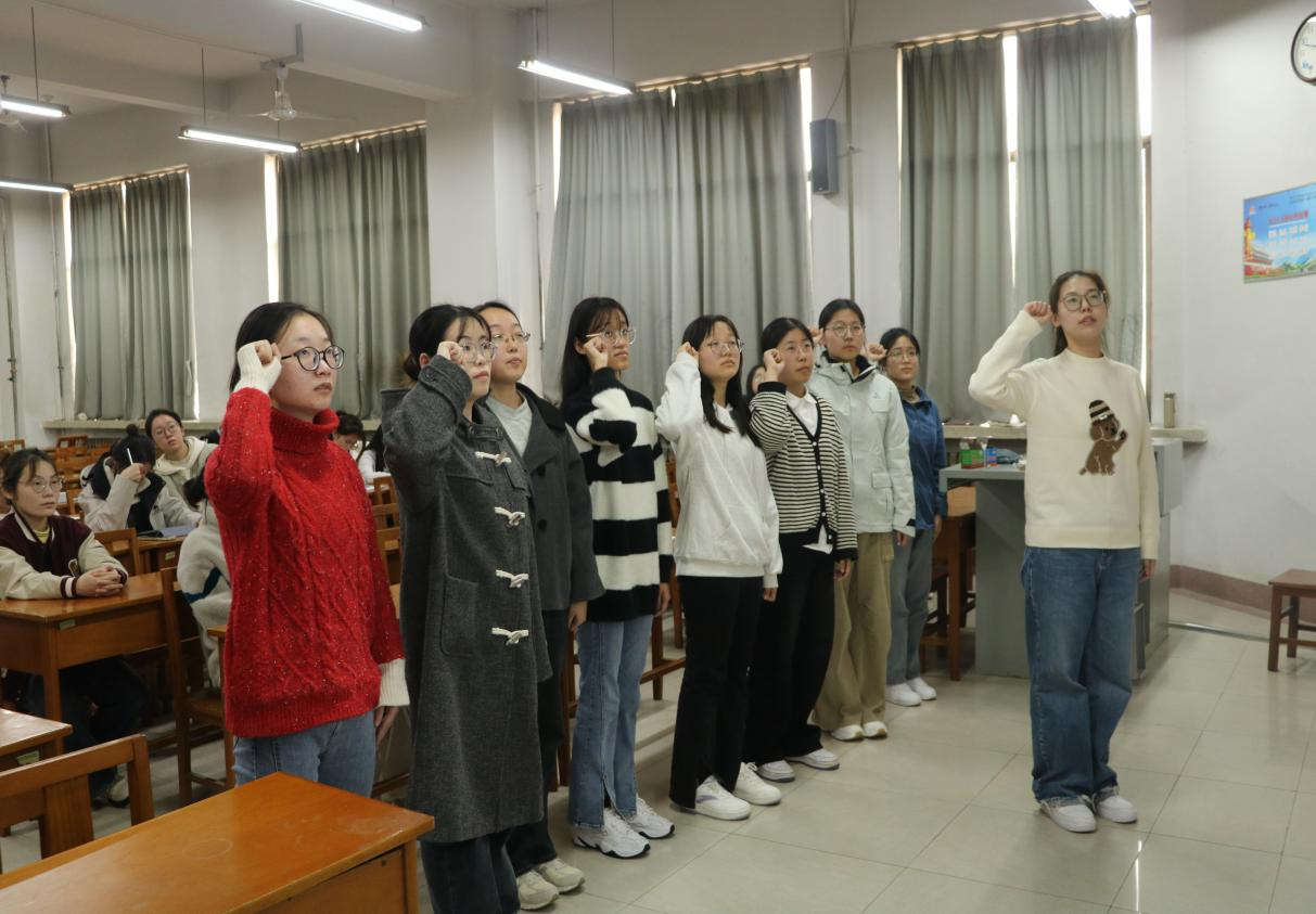 会议伊始,学院就《论党的青年工作》展开学习,明确了深入贯彻新时代青年工作的重大意义。接着,由发展对象宣读入党志愿书,预备党员宣读转正申请书,依次介绍自身情况和努力方向。经支部党员讨论和无记名投票,同意接收史修涵、徐帆等十位同志为预备党员,尹董雨、杨冬敏等八位同志按期转为中共正式党员,八位转正预备党员进行宣誓。最后,李宴美老师对以上同志表示祝贺,希望他们从新的起点砥砺前行,锐意奋进,要努力学习党的基本理论和基本知识,要增强党员的责任意识,在工作、学习和社会活动中起模范先锋作用,努力做一名合格党员。