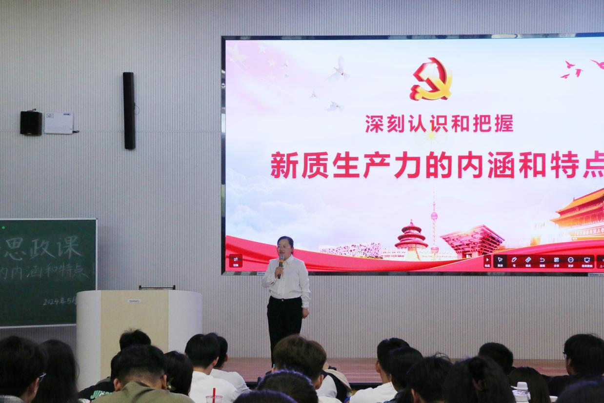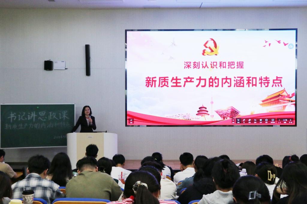 党委书记石倩为学生讲授题为《深刻认识和把握新质生产力的内涵和特点》的专题思政课,学院团委书记李宴美主持活动,bet365
