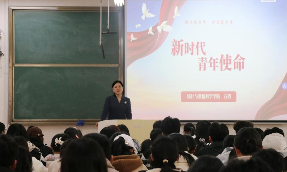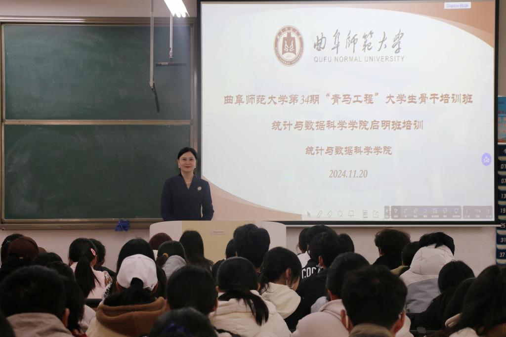 2024-2025学年“青马工程”大学生骨干培训班暨第三十四期团校培训第一课于11月20日下午在西联一教室开讲,学院党委书记石倩主讲,24级辅导员李文静主持,启明班全体学员参加。