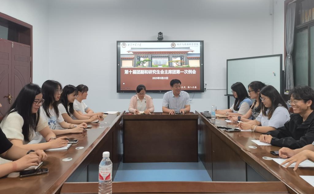 在统计楼 106室 召开第十届研究生团副和研究生会主席团第一次例会。会议邀请学院党委副书记季中和团委书记李宴美出席,研究生辅导员管阳老师主持,第九届与第十届研究生团副和研会主席团成员参会。