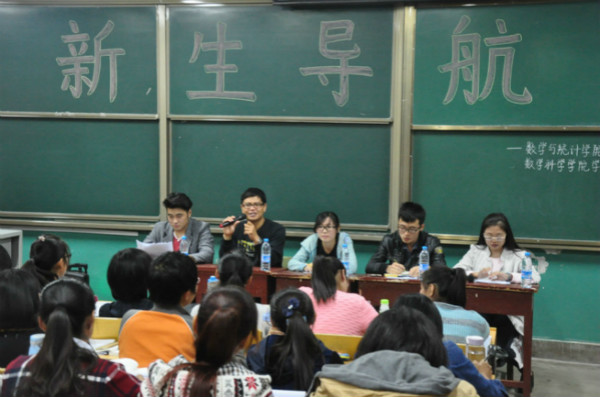 2015级"金秋送爽喜迎八方学子,丹桂飘香共祝美好未来"主题新生导航在数学科学学院系楼成功召开。本次活动邀请了专业课老师陈全国、辅导员李玲、学生会主席团成员以及优秀学生代表为新生们进行导航。