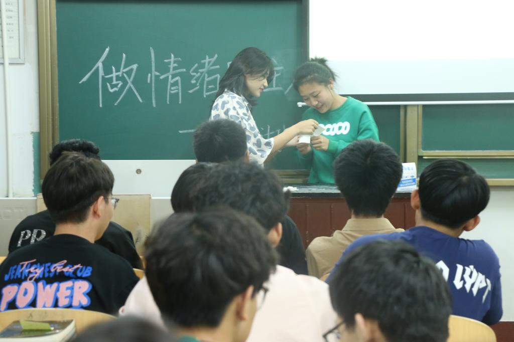 活动伊始,各班心理委员播放相关视频并以其为切入点,让同学们了解到基本情绪的类型和表现,使同学们对情绪有了更加生动直观的认识。随后,各班心理委员通过互动小游戏等活动指出情绪存在的正常性和合理性,强调了做情绪的主人的重要性,并对于“如何正确地控制和调节情绪”提出了自己的见解和方法。同学们在轻松愉悦的实例演示和讨论中,不仅掌握了有效的情绪调节方法,还培养了积极的情绪态度,提高了自身心理健康水平。最后,各班心理委员鼓励同学们在日常生活中运用合理的方法,管理好自身情绪,助力自身全面发展,为未来的学习与生活奠定坚实的基础。