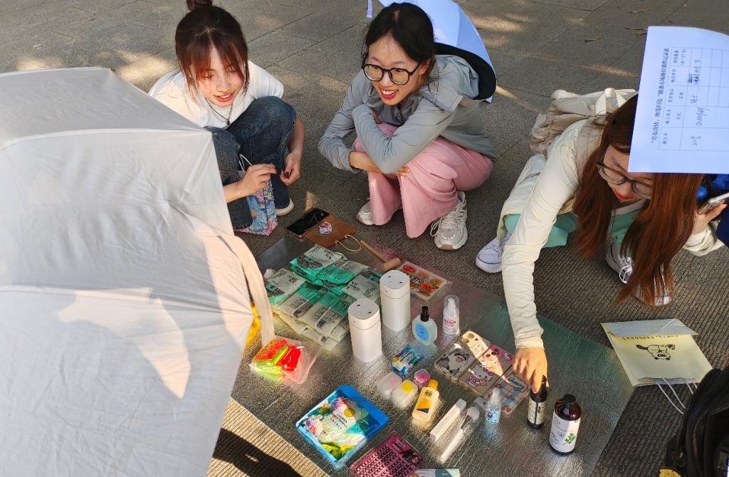 摊位琳琅满目,从学习用品到装饰品,各式各样的二手物品应有尽有。学院的同学们热情洋溢地参与其中,积极介绍每件商品的独特之处,吸引了众多师生驻足观看并询问详情。