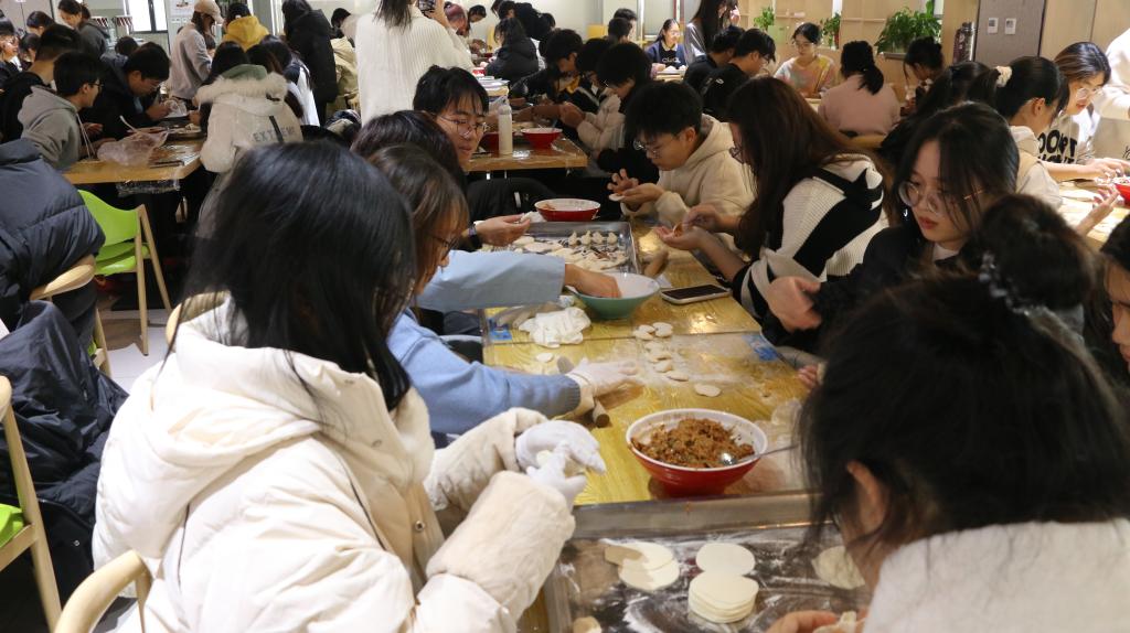活动伊始,季中书记亲临现场,讲述冬至包饺子习俗的渊源,鼓励同学们积极投身活动,并期望大家在包饺子中收获快乐,在协作中增进友谊。同时,李宴美老师也参与到包饺子的队伍中,与同学们畅谈甚欢,亲切询问同学们近况,分享包饺子技巧,鼓励同学们积极动手实践,拉近了师生距离。