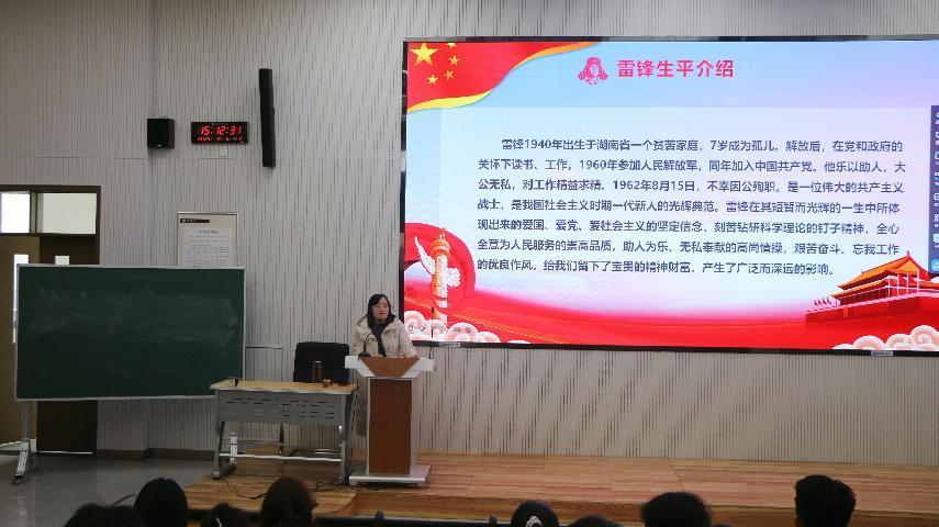 于3月5日下午3点在致知楼B202举办“学习雷锋精神,传递爱的力量”学习雷锋纪念日专题团课。本次团课由学院团委书记李宴美主持,学生会副部和干事参加。