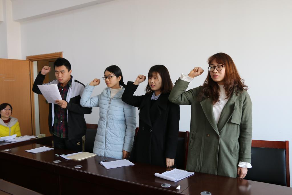 此次会议秉承着“公正、公平、公开”的原则,严格按照各项程序执行。首先支部副书记李玲同志宣读转正大会流程。接着,高宇、刘琳、许小涵、王晓媛四位同志分别宣读转正申请书,积极向党组织汇报这一年以来的思想、工作和学习等情况。然后,支部全体正式党员在深入了解这四位同志成长与发展的情况下,对她们进行了民主评议。最后,在场的正式党员对四位预备党员能否转正的问题进行了无记名投票。最终,全体与会党员全票通过并一致同意高宇、刘琳、许小涵、王晓媛四位同志转为中共正式党员。最后预备党员面对党旗进行宣誓。