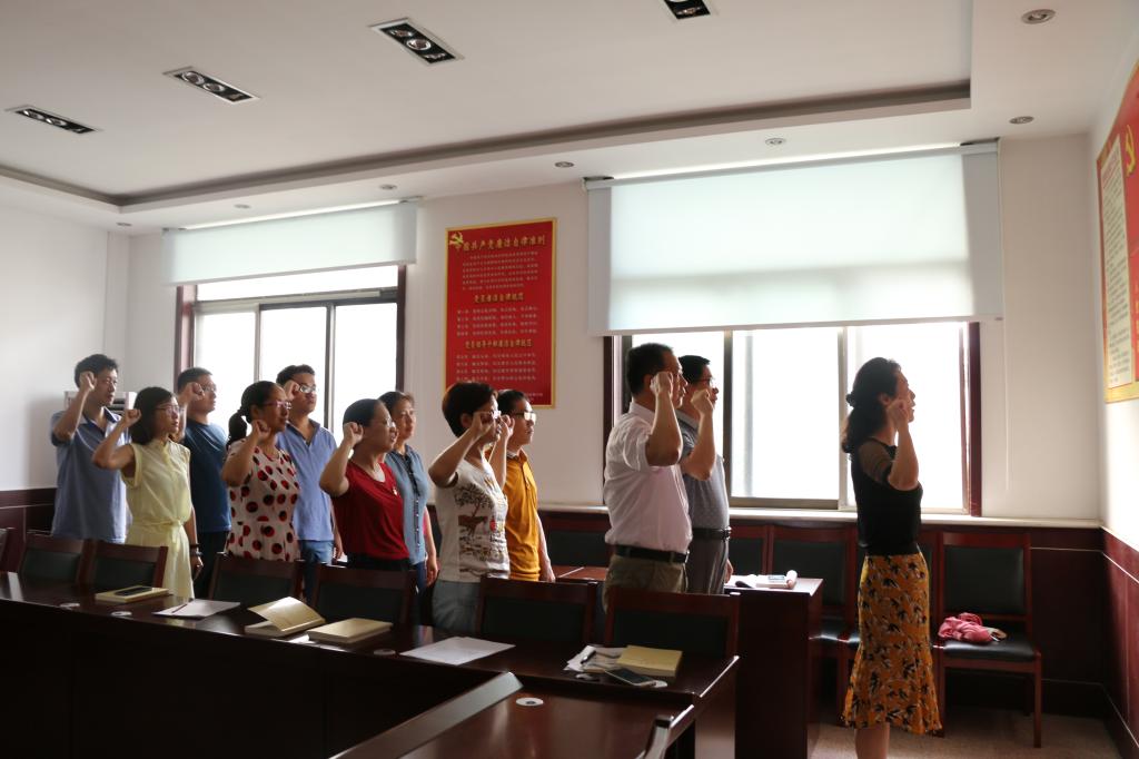 7月3日下午,教工支部书记苏玉霞做专题党课,以“提高党员政治素养,建设学习型党组织”为题给教工支部党员讲授党课。苏玉霞同志强调推进学习型党组织建设,就是通过不断的学习,教育和实践,提高思想政治和理论素养。党员是党的细胞,是学习党组织建设的实践主体;建设学习型党组织,关键地是要在党员学习中保持“实心”,结合实践,讲究实效,注重实干,保持崇尚学习的良好风气。党课结束后,支部书记苏玉霞带领全体教工党员面向党旗宣誓,重温入党誓词:“我志愿加入中国共产党,拥护党的纲领……”在鲜红的党旗下,全体党员庄严宣誓,表达对党的忠诚,时刻提醒自己不忘初心,勇担使命,一心一意跟党走。