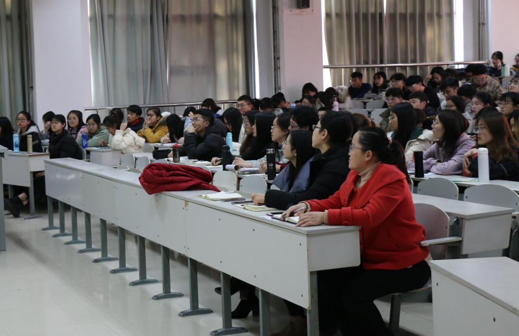 研究生导师,山东省“齐鲁文化之星”,济宁市“圣地名师”胡亚军老师主讲。本科生党支部书记李宴美、辅导员张风姣、张庆伟老师、本科生党支部全体入党积极分子、发展对象、预备党员、党员、173名“青马工程”学员积极学习本次课程。