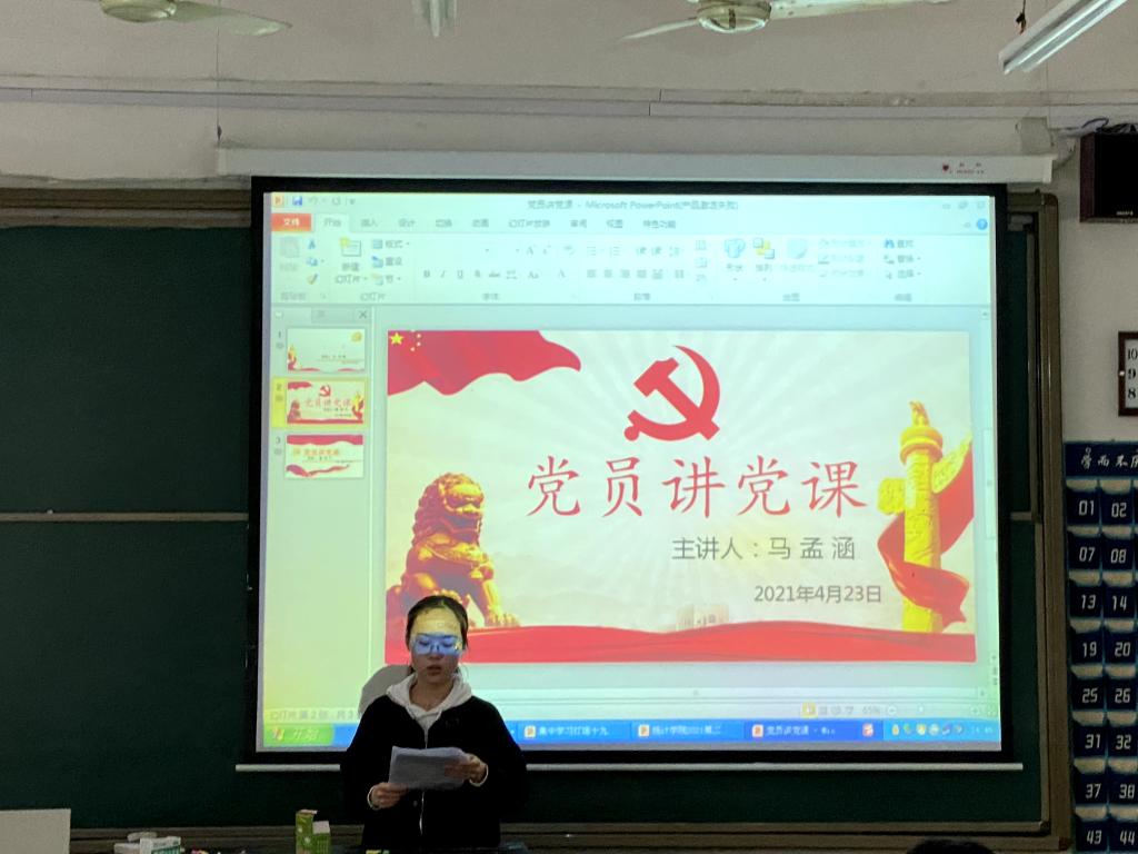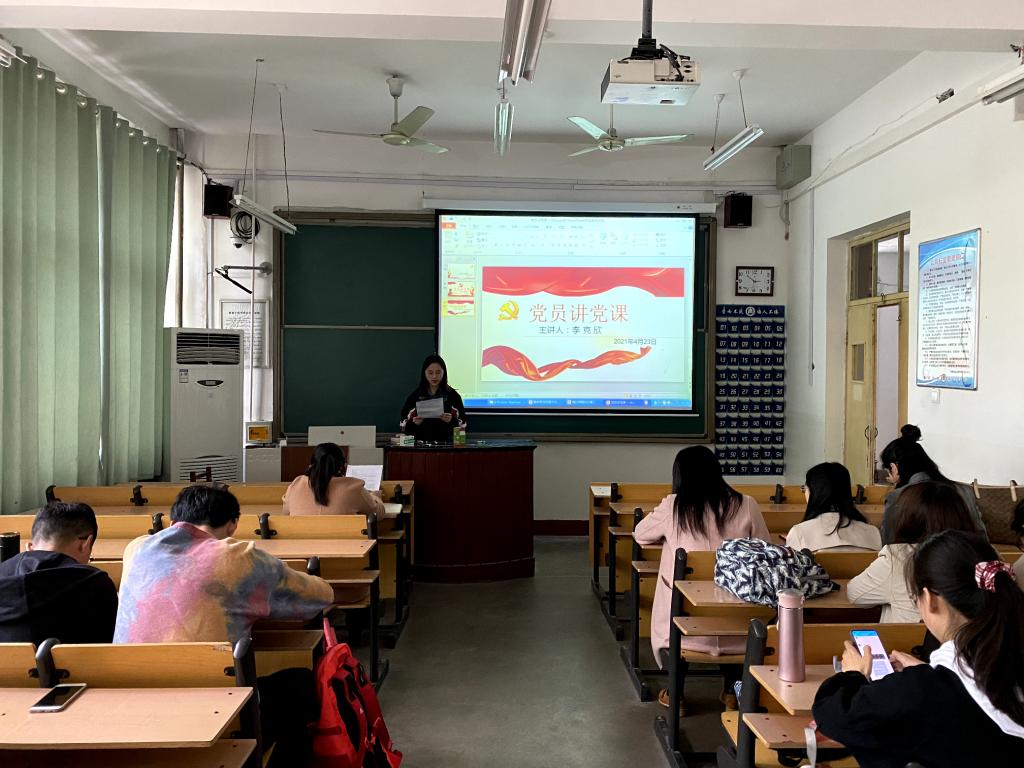 于本科生党支部4月23日下午3:00在学院楼顺利开展党员讲党史活动。党支部全体党员和预备党员到会聆听。