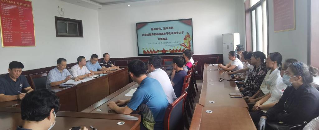 9月30日,学院在213会议室组织全体教职工学习第九次党代会精神,全体教职工参加会议。会议上刘明海以此次党代会为主题出发点,以曲园精神为内核,要求全体教职工认真学习学校党委书记邢光在学校第九次党代会上作的报告,就着重落实贯彻报告中确定的发展思路、奋斗目标和主要任务进行了强调,进一步向全体教职工明确了新发展阶段的历史使命与目标。此次主题会议,使全体教职工更明确未来学校及学院发展方向,全体教职工要攻坚克难,肩负起时代重任,为建设世界知名的高水平孔子家乡大学积极贡献力量,以实际行动喜迎党的二十大胜利召开。