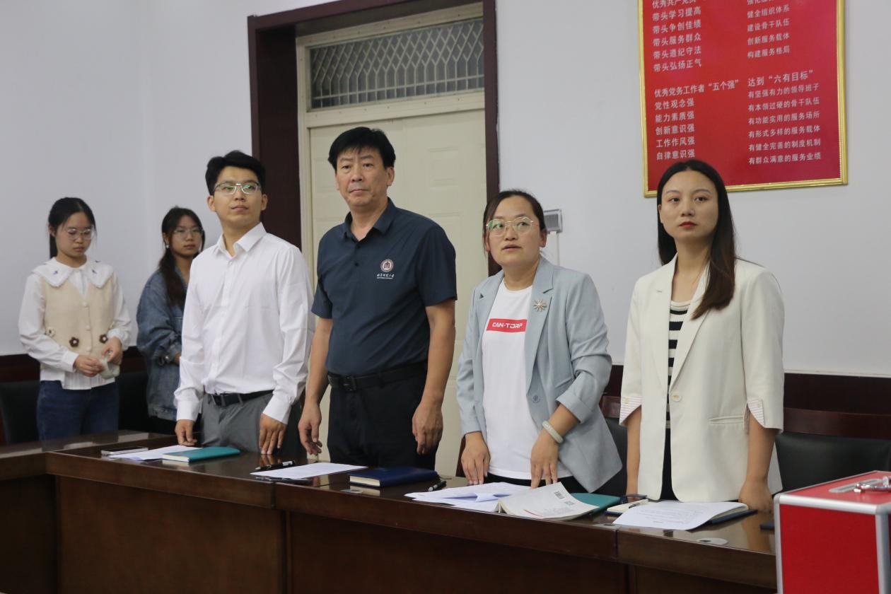会议伊始,全体师生起立奏唱《中华人民共和国国歌》,会议在庄严的国歌声中拉开了序幕。在激昂的国歌声中,各位党支部成员更加坚定了自己“不忘初心,牢记使命”的工作理念。随后,李宴美带领大家学习《中国共产党章程》和《中国共产党基层组织选举工作条例》。