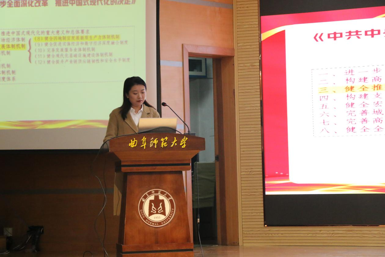 (通讯员:张佳怡)为深入学习贯彻党的二十届三中全会精神,提升学生的理论素养与实践能力,并激发青年学子的责任感与使命感,马克思主义学院宣讲团于2024年10月23日下午2点在孔子会堂成功举办党的二十届三中全会精神专题宣讲会。本次会议由团委书记李宴美主持,主讲人为马克思主义学院宣讲团成员,bet365