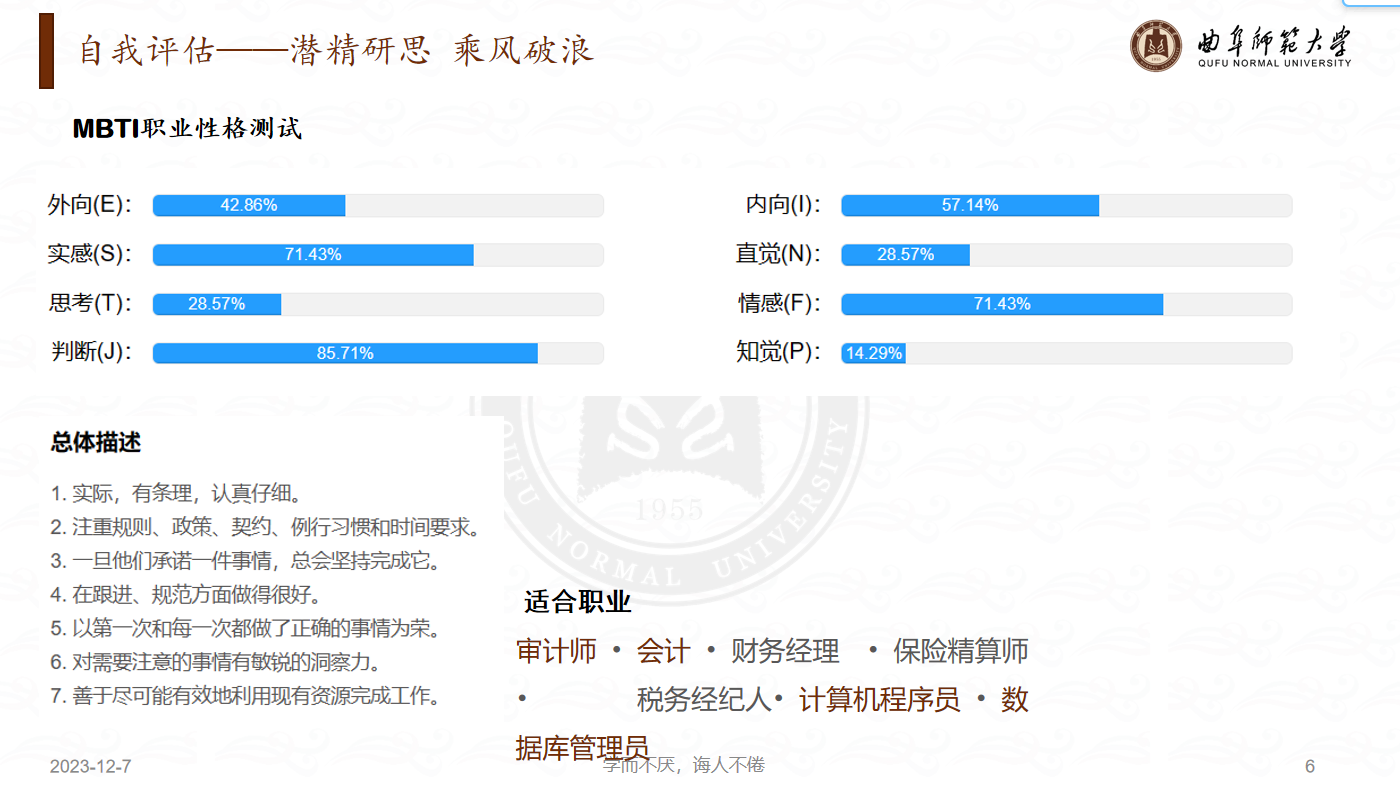 比赛自2023年11月23日开始,至2023年11月26日结束。参赛作品以线上提交的形式进行收集。在活动期间,同学们积极参与,展现出了极高的热情和才华。他们通过深入的自我分析和对不同职业的调研,制定了具有可操作性的职业规划,并提出了具体的方法策略。经过几天的激烈角逐,参赛作品最终由活动策划人员整理汇总,并由就业实习服务部进行公正评分。