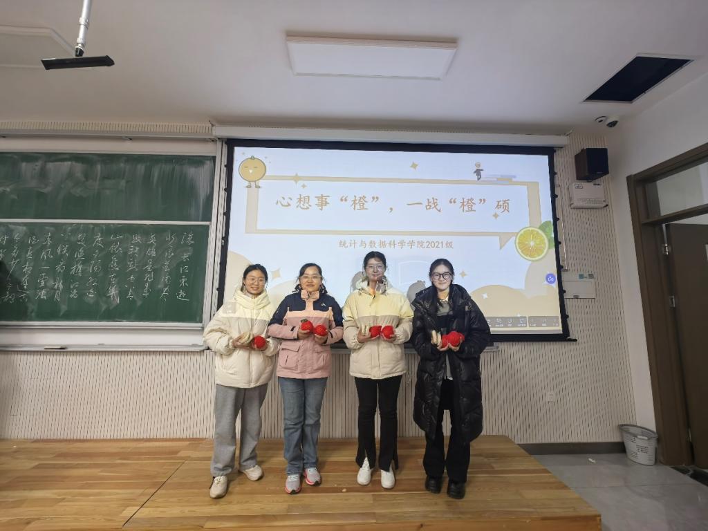 活动初,主持人阐明此次活动的目的是激励考研学子能够在备考最后的时光中坚持下来,传递学院对他们的真切关怀。而后,活动正式开始,老师们不仅表达了对考研学子们的真挚祝福以及殷切期望,还告诉同学们要找到适合自己的方式来调整好心态,不必过度紧张,一定要给予自己信心,保持积极的心态去迎接考试的到来。最后,老师们为考研学子们送上了特意准备的橙子,寓意着21级考研学子能够心想事“橙”,一战“橙”硕,同时祝愿所有考研学子都可以如愿上岸。