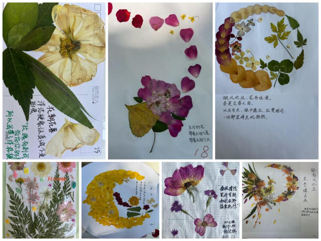 本次活动采用线下提交作品的形式。同学们自主制作压花标本,并于活动当天提交作品。在经过作品的信息采集与统计之后,同学们以抽签的形式交换作品,向他人送出美好祝愿。活动期间,同学们借助强大的动手制作能力,辅以天马行空的想象力,创作出许多优秀的作品。在提交的作品中,不仅体现出同学们对春日的喜爱与对美好生活的憧憬和向往,还展示了同学们发现美,创造美的能力。